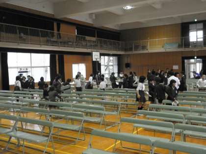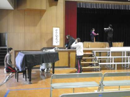 5,6年生が講堂の大掃除をして長椅子を並べ、18日の学習発表会の準備をしました。放課後には教職員が放送設備や舞台道具の最終チェックをしました。