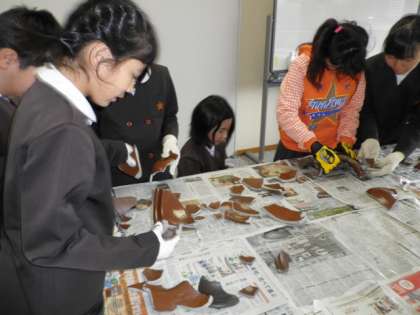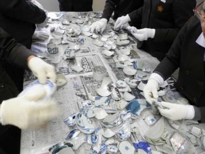 200年前の江戸時代に使っていた割れている皿や茶わんをつなげて復元していきました。