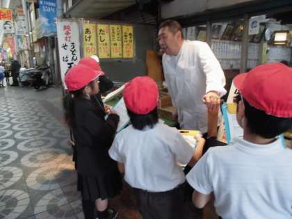 12月に予定しているキッズマートのために3年生が繁栄商店街に出かけました。