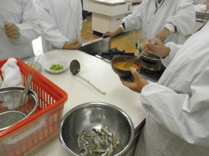 5年生が家庭科でみそ汁とごはんを作りました。調理実習は2回目なので、役割分担も慣れたものです。