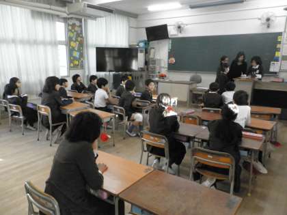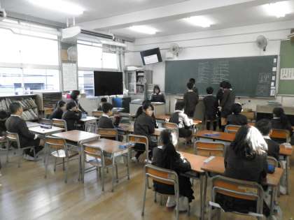 朝の児童集会の時間を使って、ふれあい班活動をしました。1月20日の土曜授業で実施する「ジャンボかるた大会」の準備です。