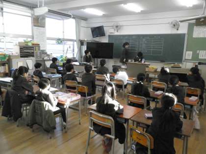 写真上 ふれあい班 え (2年2組の教室)