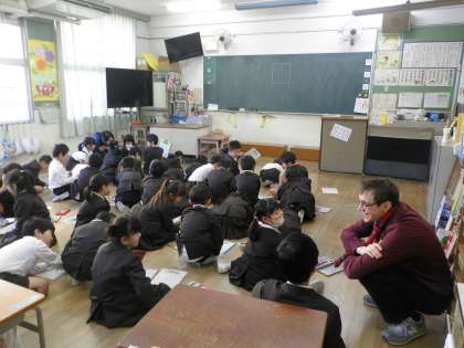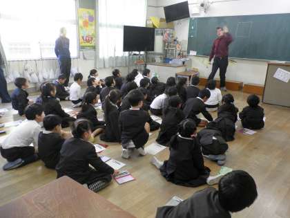 今日は、C−NETのビルギル先生が5,6年生の英語活動のほかに、1,2年生とも一緒に英語活動をしてくださいました。