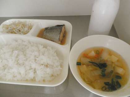 11日 さばの味噌煮 すまし汁 もやしのゆずの香あえ ごはん 牛乳