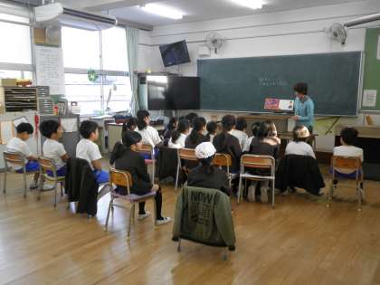 3学期は、いつもの1・2年だけでなく、全学年を順番に回ってくださいます。今日は4年生です。早口言葉の絵本で、みんなで盛り上がっていましたよ。