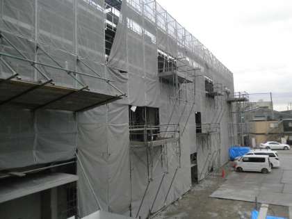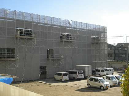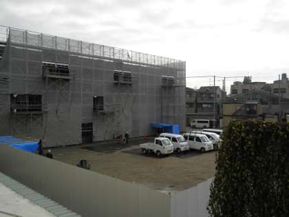 3学期も校舎建築の工事が続いています。内部の作業が中心のようで、廊下から見る限りは同じ風景です。いつもたくさんの工事業者の方の自動車が並んでいます。