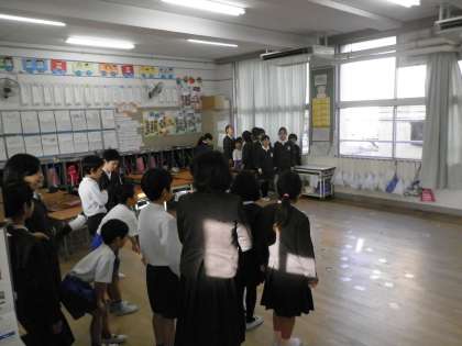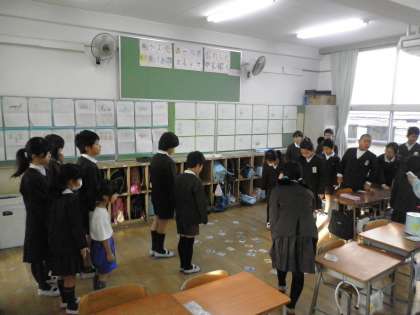 児童集会の時間にふれあい班活動をしました。今日は、ふれあい班のペアで、地域かるた取りをしました。  (写真はふれあい班あ、い)