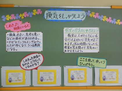 2月の掲示板は「換気をしっかりしよう」というテーマで作成しています。