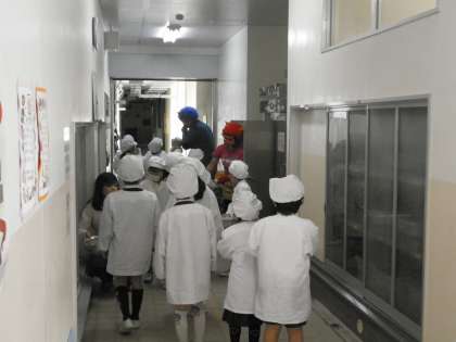 明日は節分、一足早く赤鬼と青鬼が南市岡小学校に来てくれました。