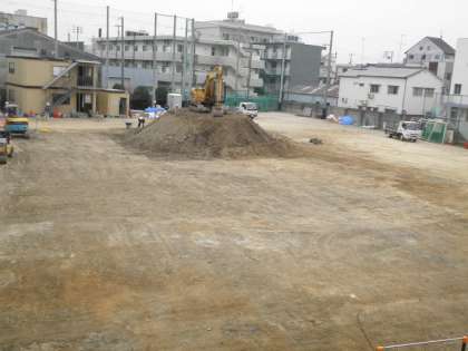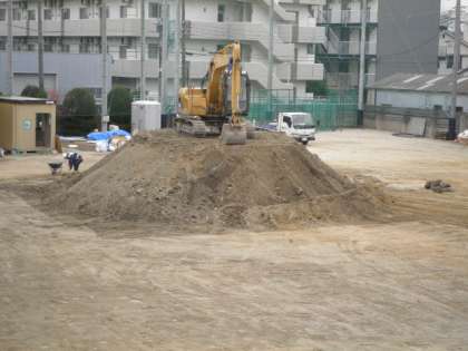運動場の整備が始まりました。まずは,工事で傷んだ地表部分を削り取ります。表面から10cm〜20cmほどを削って新しい土と入れ替えます。
