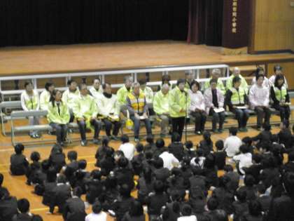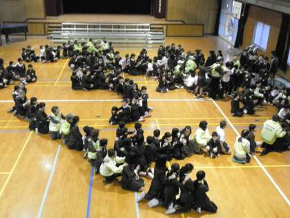 3月5日の朝、見守り隊の皆さんとの交流会がありました。雨が降る中、地域の皆さんや厚生女性会、民生委員の皆さんが参加してくださいました。じゃんけん列車をした後、児童からのお礼の手紙を6年生が贈りました。