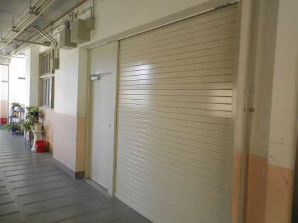 6日の夕方に、防火区画の点検のために階段の前のシャッターが下りました。3月半ばの引き渡しに向けて、着々と整備されていきます。