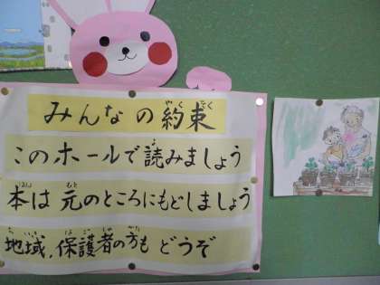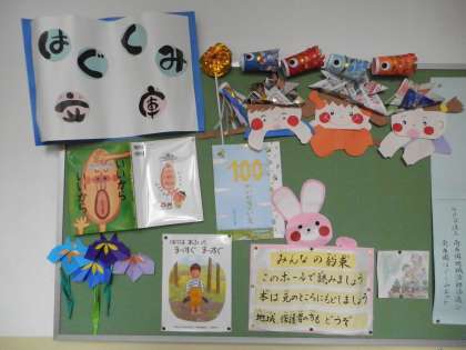 はぐくみ文庫の掲示が変わりました。はぐくみネットの方々の手作りです。