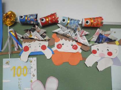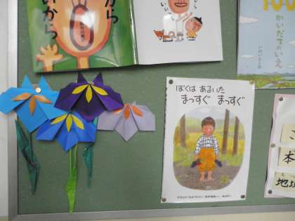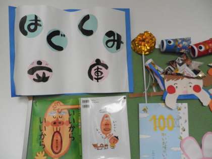 こいのぼりと花ショウブがあしらわれ、季節の移ろいを感じられます。本が3冊ほど行方知れずです。心当たりの方は、戻しておいてください。