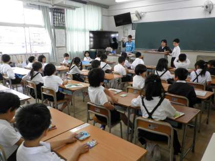二週に一度、月曜日の朝に健康委員会の児童が担当クラスへ行き、ハンカチ・はなかみを持って来ているか、つめは長くないかを確認しています。