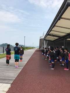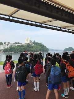 予定より早く鳥羽マリンターミナルに到着しました。バスに酔う子どもはいませんでした。自然体験開始式をしています。