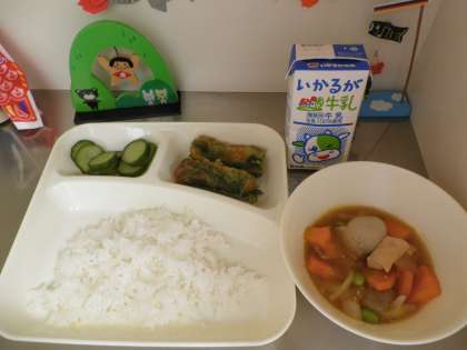 献立は、ちくわのいそべあげ 鶏肉とさといもの煮もの あっさりきゅうり ごはん 牛乳 です。