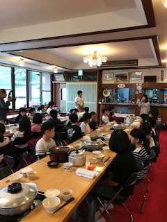 カモ鍋をいただきました。おいしいと大好評で、出汁まですっかり食べた班もありました。