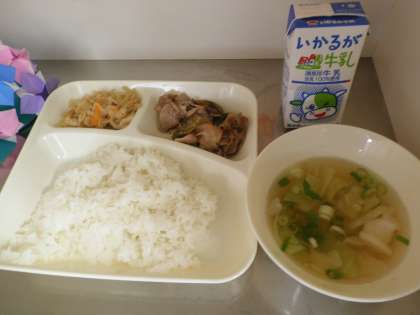 11日 豚肉の梅風味焼き すまし汁 切り干し大根の炒め煮 ごはん