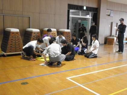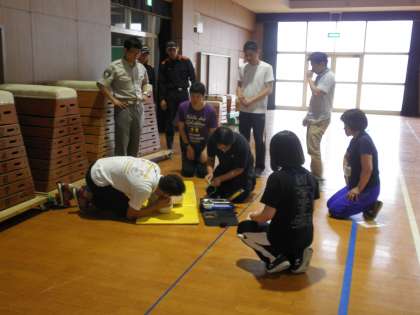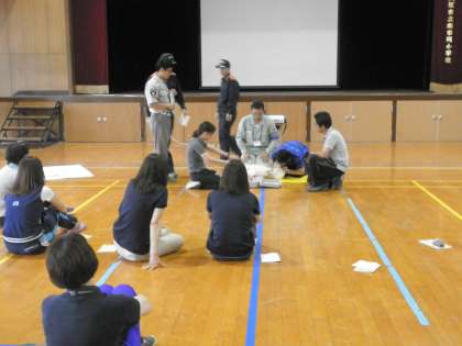 講習の途中で、消防署から緊急要請が入り、校庭から救急車が出動してご近所の方は驚かれたかもしれません。(大事には至らなかったようです。)