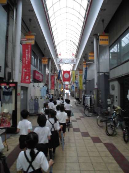 商店街まではみんなで歩き、商店街についてからは、それぞれ事前に決めたお店にグループごとにインタビューに向かいました。