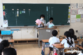 朝の読書タイムの時間に、図書委員会の児童が、全クラスに1〜2人ずつ「おすすめの本」の紹介をしに行きました。