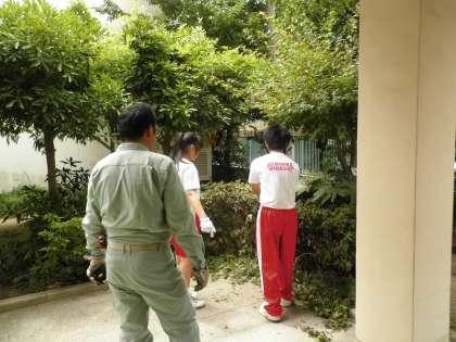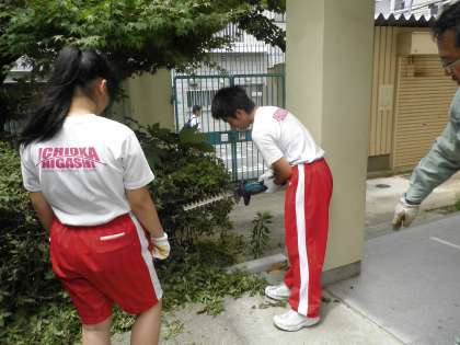 市岡東中学校の2年生が職業体験に来ています。各教室の授業の様子を見たり、管理作業員さんと一緒に樹木の剪定をしたり、7月3日と4日の2日間で、学校の中の仕事を体験する予定です。