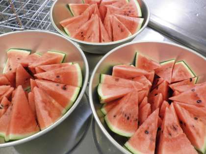 学校給食では、1年に1回だけ登場する「すいか」です。