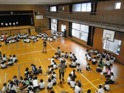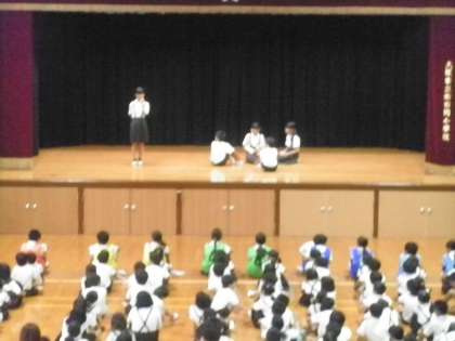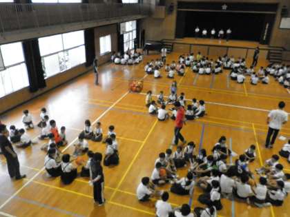 今日は、集会委員によるゲーム集会でした。「ごろごろ、ドン!」と声を掛け合いながらボールを回すゲームをしました。ふれあい班のメンバーで、楽しそうな笑い声が響きました。