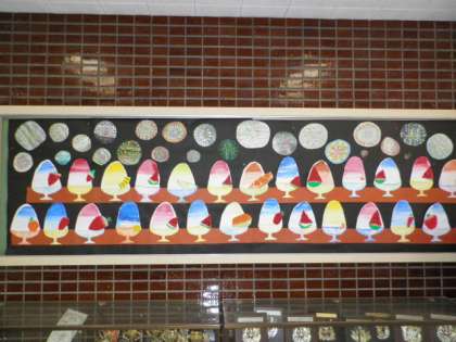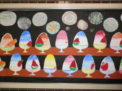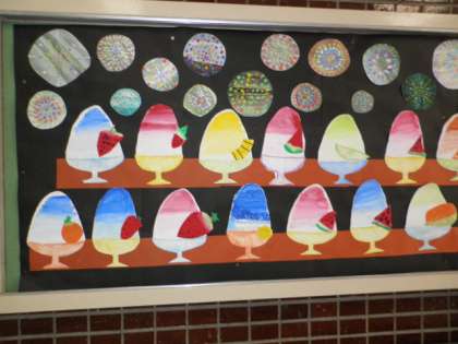 8月の玄関掲示です。かき氷と花火です。毎日猛暑が続きますが、くれぐれも体調管理にご留意ください。