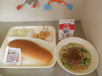 献立は、タンタンめん キャベツの甘酢づけ さくらんぼ(缶)コッペパン いちごジャム 牛乳でした。