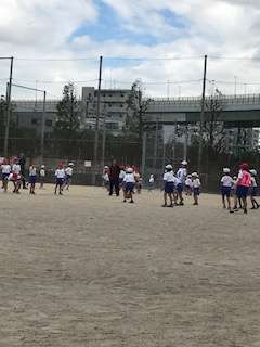 学年に応じてボールの投げ方を変え、楽しんでいます。