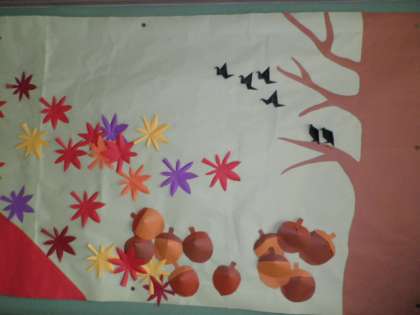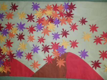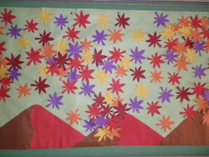 今月は3年生です。秋の紅葉がテーマです。学校のお越しの際にご覧ください。