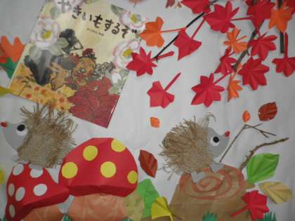 山の秋の紅葉に変わりました。新しい本も入っています。どんどん読みに来てください。