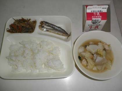 12月 3日 いわしのしょうが煮 うすくず汁 高野どうふの卵とじ