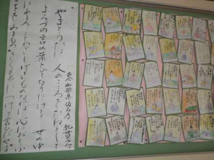 見事な「小倉百人一首」が並んでいます。来校されたときに、ぜひ、ご覧ください。