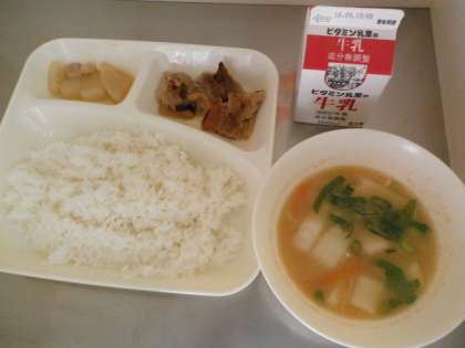 献立は、豚肉のしょうが焼き みそ汁 大根の煮物 ごはん 牛乳でした。