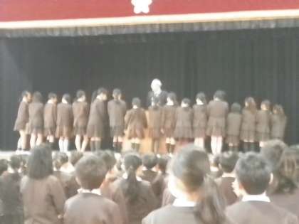 校長先生が、「インフルエンザや風邪が流行しているので、健康に気をつけましょう。」と話されました。