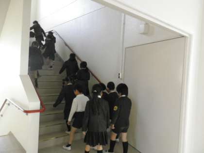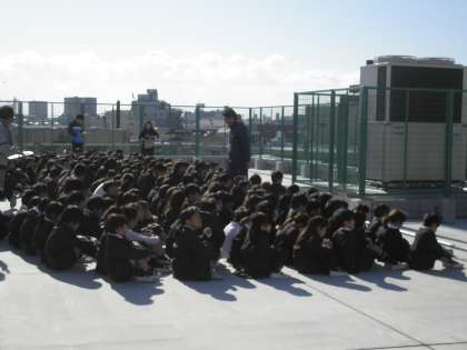 地震・津波に備えて、新校舎屋上へ避難訓練をしました。