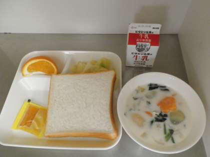 5日 ほうれん草のクリームシチュー キャベツのサラダ いよかん