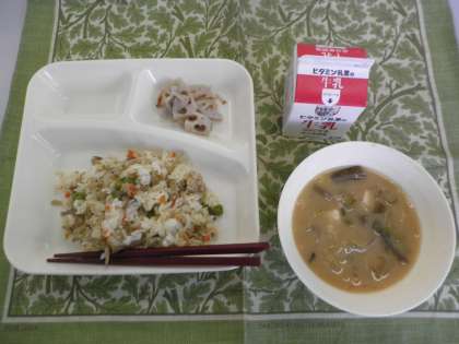 6日 とりごぼうごはん ほしずいきのみそ汁 焼きれんこん 牛乳