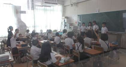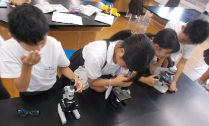 理科では顕微鏡を使って観察をしたり、外国語の授業では学校の先生に英語でインタビューをしたりしました。