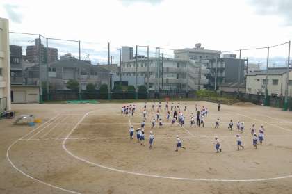 昨夜にはたくさんの雨が降りましたが、朝にはカラッと上がっており、無事に運動場での体育ができました。
