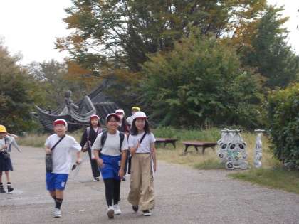 「先生、国際庭園にいろんな国があった〜」「池に鳥が70羽以上いたよ」「めっちゃ楽しい」と、それぞれ発見したことや、感じたことをたくさん話していました。