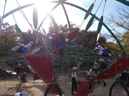 最後に鶴見っ子パークの遊具で遊んで、笑顔満点の子どもたちでした。