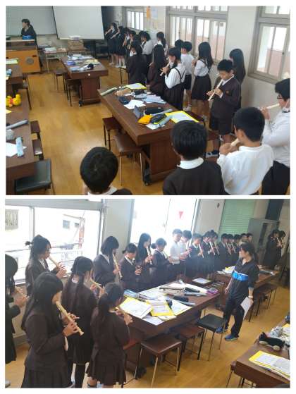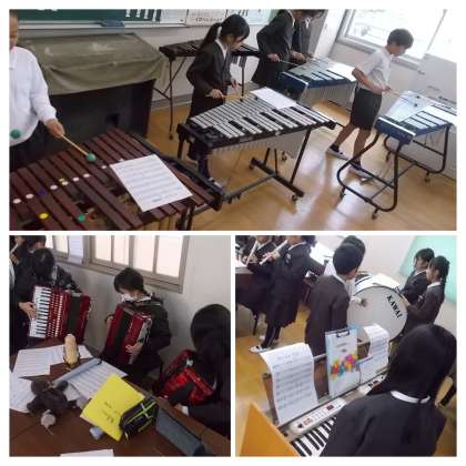 1組・2組のみなぎるパワーを集め、合奏に取り組んでいます。