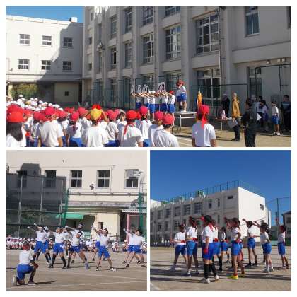 あ、そうそう、この運動会は、南市岡小学校在籍の302人、全員出席!児童会のめあて通り、「笑顔で楽しい運動会」になりました。最高の1日でした。玄関掲示の「赤ミャク、白ミャク」も笑顔で応援してくれました。