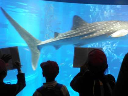 実際のジンベイザメの海くん遊さんに会いました。ペンギンの食事も見ました。