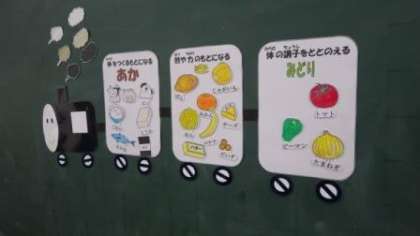 1年生は、食べ物の名前と三色栄養について学習しました。