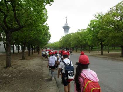 鶴見緑地公園に行きました。まず、クイズをしながら咲くやこの花館を見学しました。次に、3.4年合同のグループに分かれて、オリエンテーリングをしました。グループで協力してクイズに答えたり、ゲームをしたりしながら、仲良く回っていました。